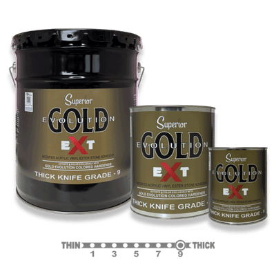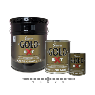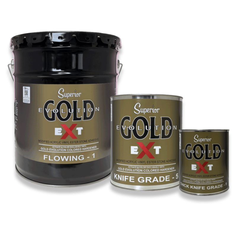 Superior GOLD EVOLUTION EXT BULK is the stone industry’s first adhesive system that allows you to Color & Activate at the same time. Built on our advanced Modified Acrylic Vinyl Ester chemistry, GOLD EVOLUTION EXT BULK sets a new benchmark for versatility, speed and strength in countertop and surface fabrication.